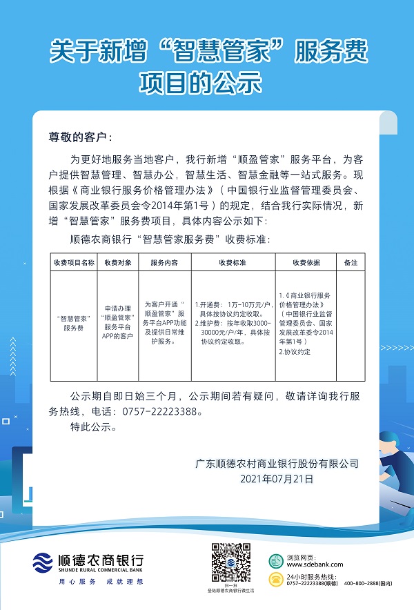 关于新增“智慧管家”服务费项目的公示