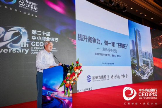 12月4日,第二十届中小商业银行CEO论坛在天津隆重开幕。顺德农商银行党委书记、董事长李宜心受邀出席,并作题为《提升竞争力,做一家“好银行”》的主题演讲,分享顺德农商银行在发展道路上的思考与实践。