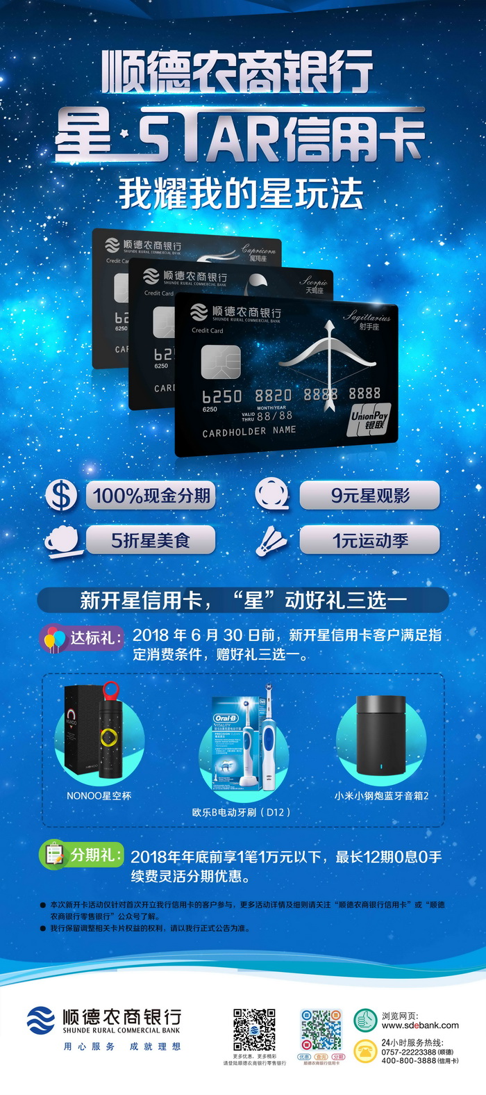 顺德农商银行“星·STAR信用卡”,我耀我的星玩法!