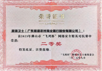 这份荣誉的取得,体现了我行对网络与信息安全的高度重视,展现了我行网络安全团队的专业素养与实战能力,是顺德农商银行在网络安全领域深耕细作、不断创新进取的有力见证。未来,顺德农商银行将继续秉持“真情服务,从心出发”的服务理念,以此次获奖为契机,持续提升自身网络安全实力,为客户提供更安全、更可靠的产品和服务,为行业的发展贡献更多的力量。让我们携手共进,在未来的征程中创造更多的辉煌!