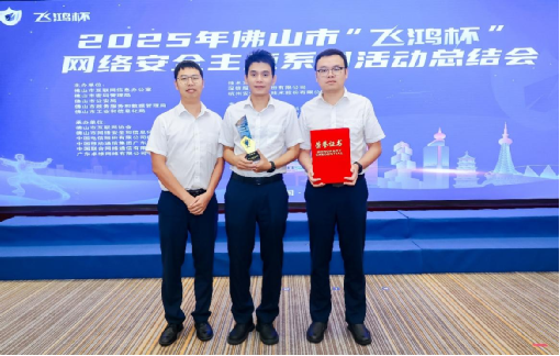 9月11日,2025年佛山市“飞鸿杯”网络安全主题系列活动圆满落幕,顺德农商银行总行信息科技部选手姚水强、卢志浩、范炳坤组成的“顺银卫士”队,在精英对抗赛中荣获二等奖。