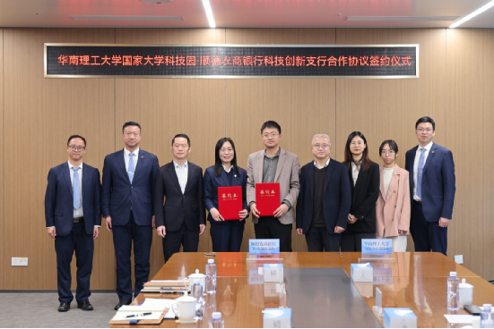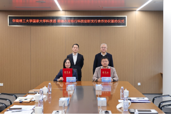 在华南理工大学产业技术研究院院长、国家大学科技园总经理江海,顺德农商银行副行长李超等领导的见证下,华南理工大学科学技术研究院副处长资智洪、科技创新支行行长林秀坤代表双方签约。