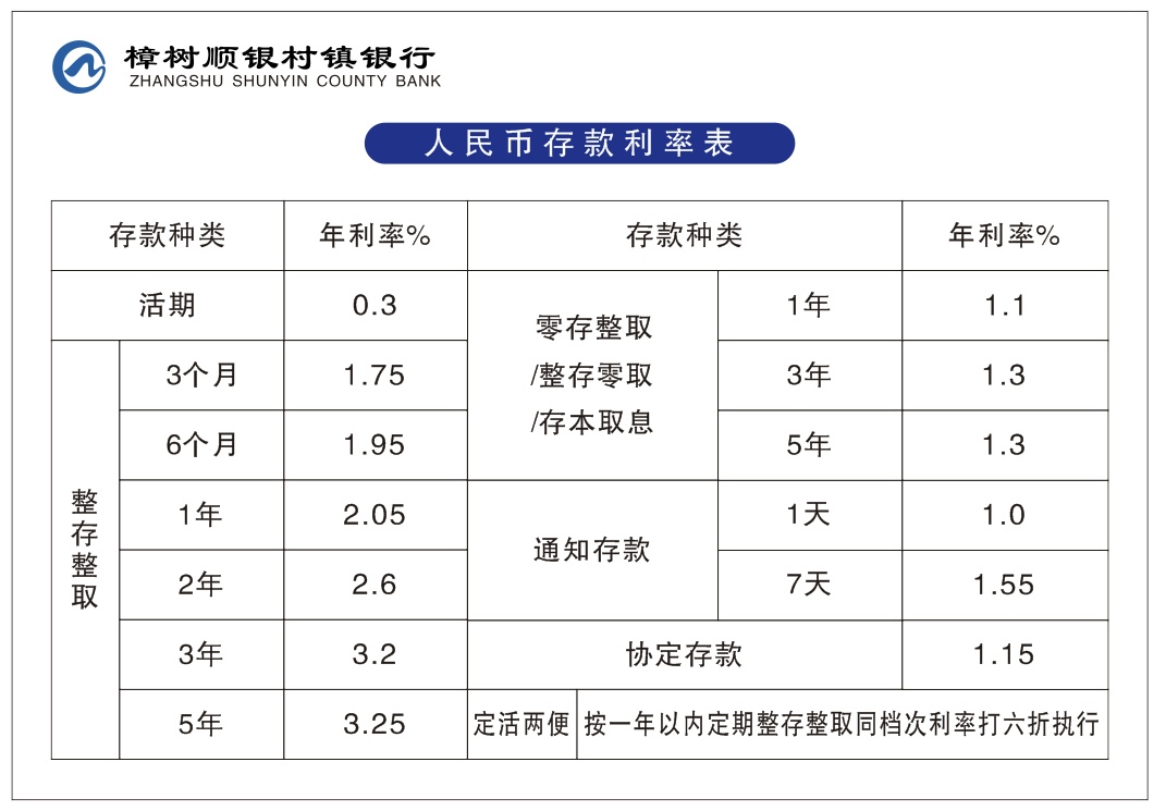 自2023年9月20日起,樟树顺银村镇银行对人民币存款挂牌利率进行调整,调整后如下表: